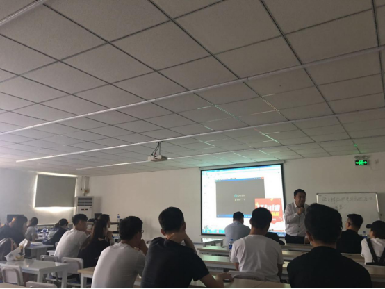 在演讲过程中,郭老师带领大家一起观看正在热播的电视剧《鸡毛飞上天》。它讲述了以义乌商人为代表的浙商,在物资匮乏的年代,凭借“鸡毛换糖”的艰辛赚取了经商的“第一桶金”,然后通过自己的勤劳和智慧,在改革开放的时代浪潮中,抓住机遇改变命运的故事。郭老师用生动的视频教学方法来告诉大家如何选择创业项目、如何抓住改变命运之法。 会议现场 会议结束后,同学们表示学到了很多创业知识,并且很多同学纷纷提出了自己的不解和疑惑,郭老师也一一做了详细的解答。最后,在一片欢声笑语中结束了本次的财富商机问题解答分享会。