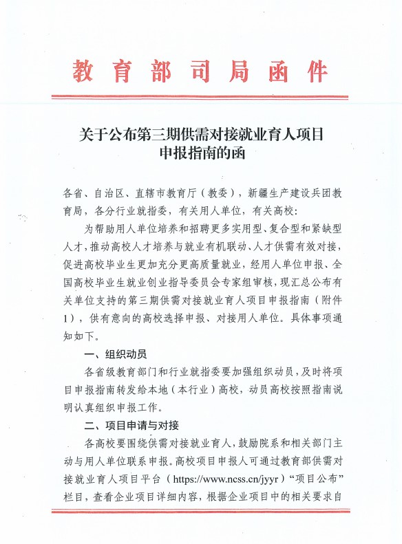 教育部高校学生司(高校毕业生就业服务司)将对校企合作项目进行复核,公布项目立项名单。